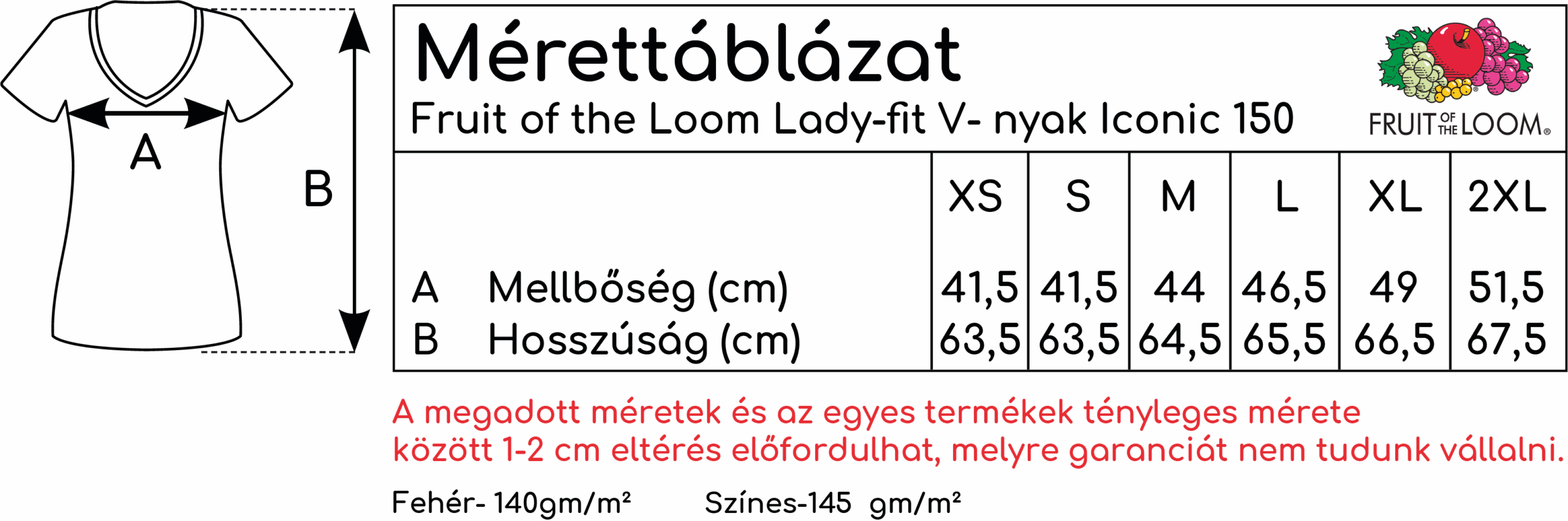 Fruit of the Loom LadyFit V nyakú Iconic 150